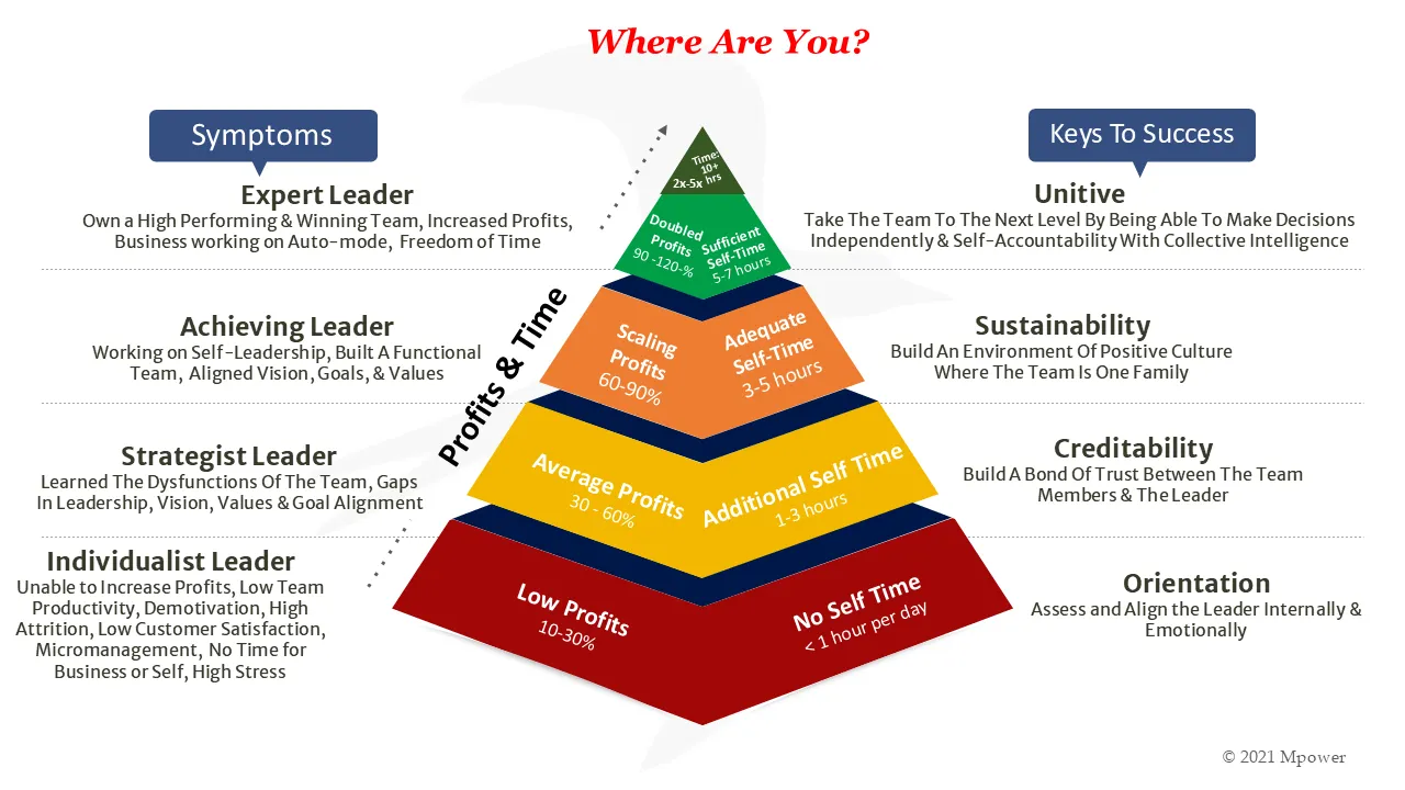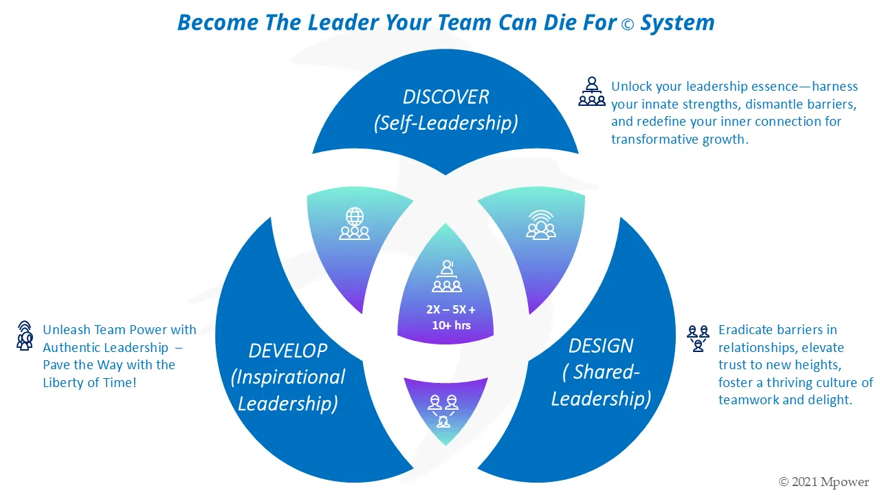 This system sets a foundation for a strong and people focused leadership where the leaders are confidently able to march towards their shared goals in line with the values of the organization and where the team trusts their leader completely, and finally increasing the bottom lines. Each leader is then having the confidence to take on higher roles and create bigger organizational impacts while scaling their business to the next level of growth while working half the time!